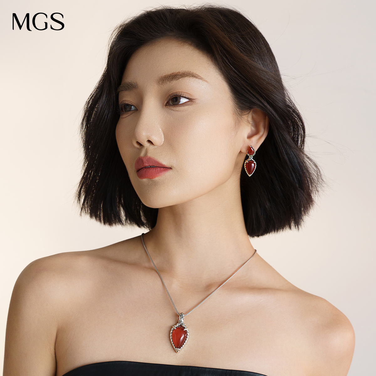 MGS/曼古银魅影耳环925银小众设计新款玛瑙耳饰红色中式生日礼物