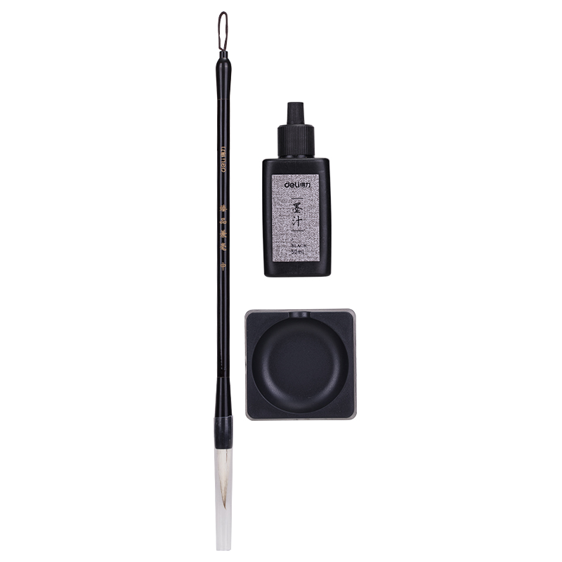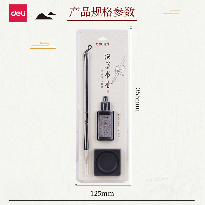 得力74297书法练习套装毛笔墨汁砚台3件套兼毫毛笔水碟50ml墨水初学者使用毛笔字中楷练习套装 xx
