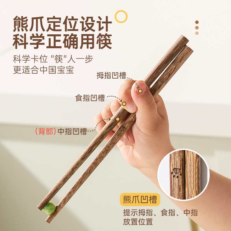 双枪儿童筷子训练3岁6岁以上食品级木质专用小学生练习短吃饭宝宝