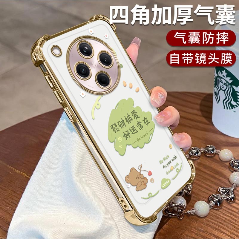 适用OPPOFINDX8手机壳发财被爱电镀四角防摔FINDX8s简约硅胶气囊全包Findx8Pro高颜值手链女款新款保护套