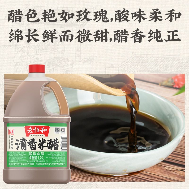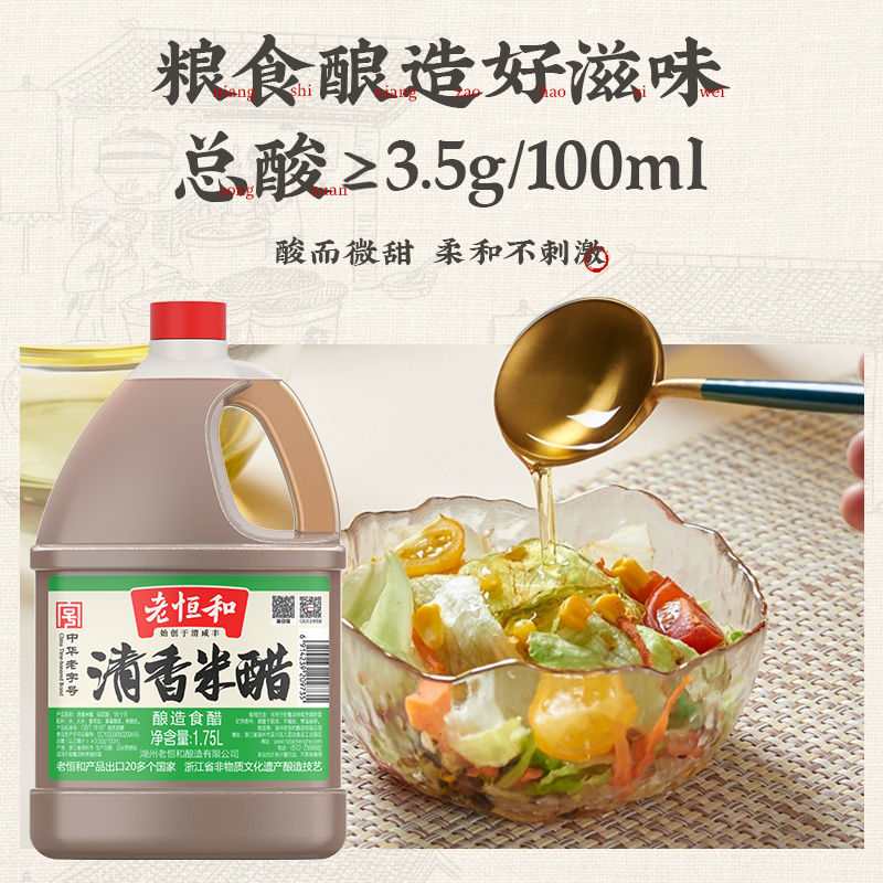 老恒和清香米醋1.75L大桶家庭量贩装厨房调味品古法陈酿酸度3.5