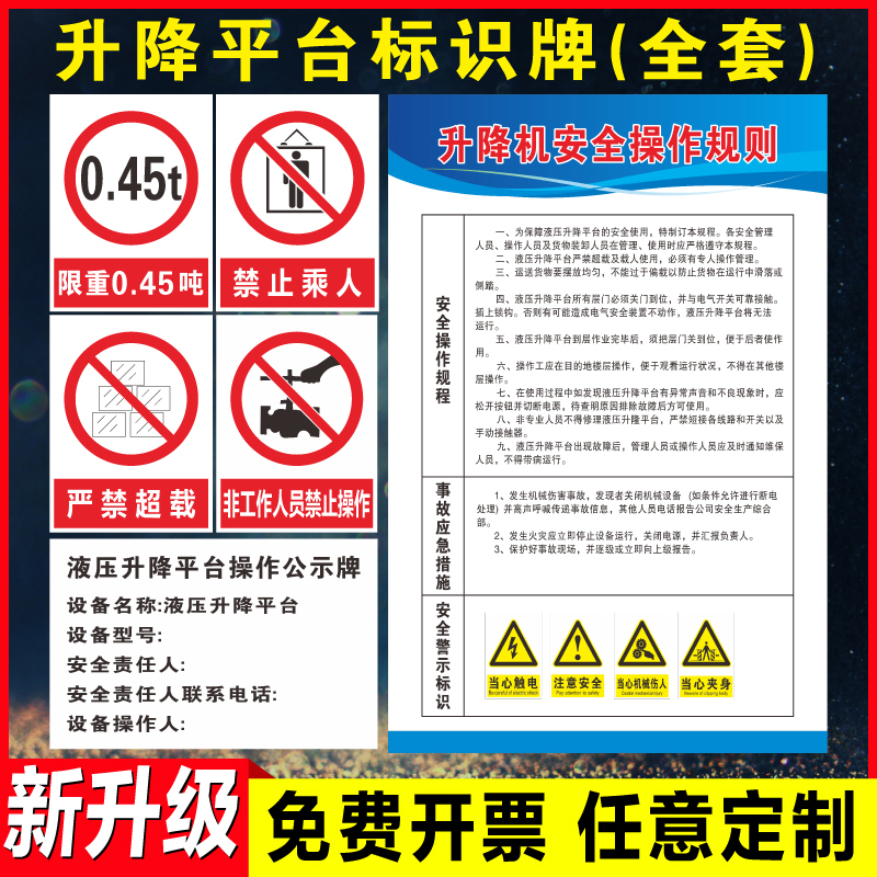升降平台安全标识牌操作规则规程严禁超载禁止乘人液压升降平台操作公示牌升降梯非工作人员禁止操作警示牌