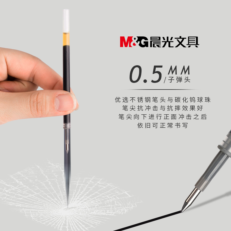 晨光按动中性笔笔芯G-5按动笔芯黑0.5mm蓝黑笔芯医用处方笔芯墨蓝色中性替芯 k35笔芯GP-1008用G5笔芯 包邮