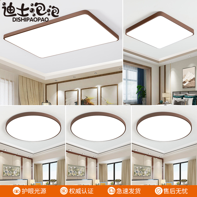 客厅主灯led现代简约大气超薄胡桃木色中古客厅吸顶灯具全屋新款