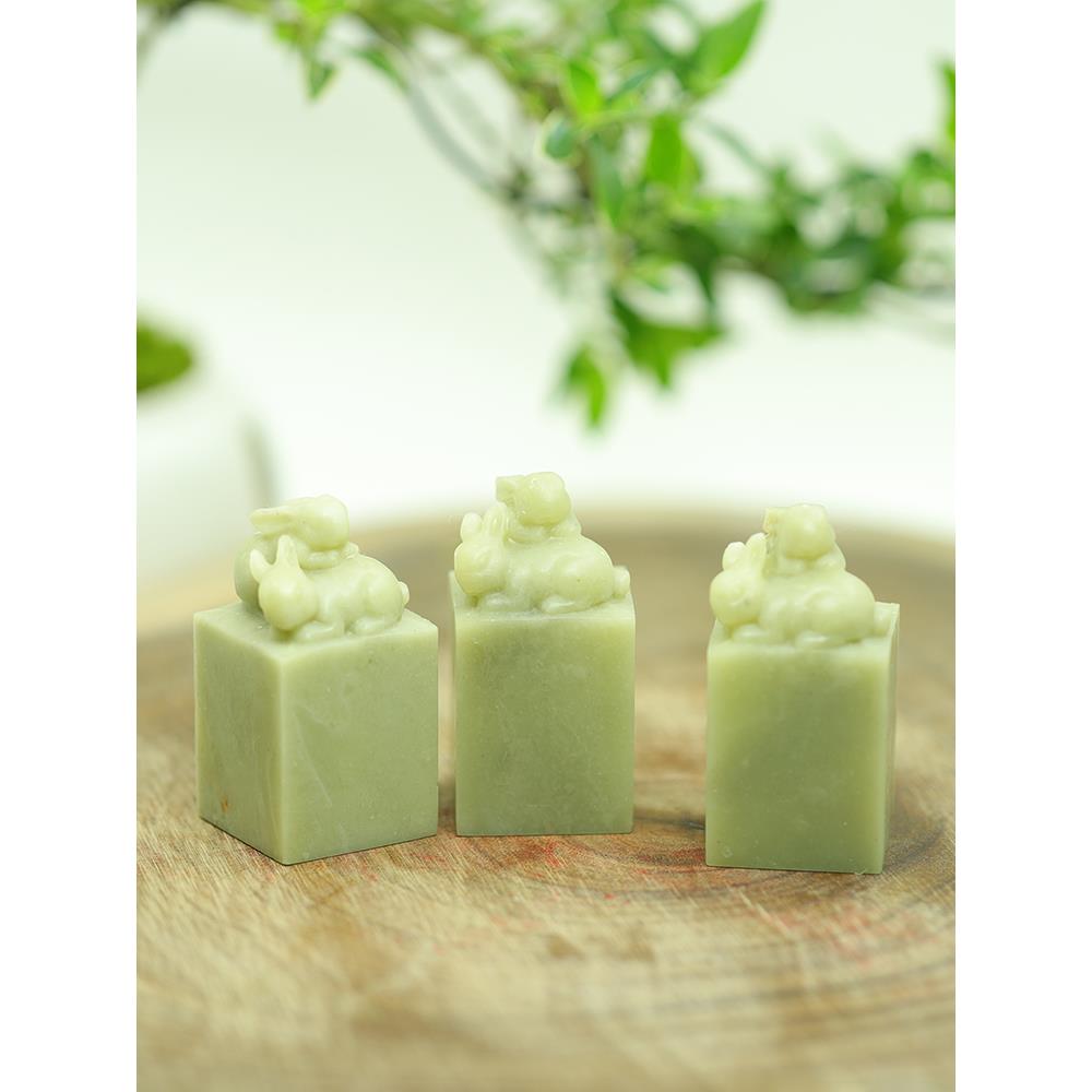 萌兔送锦盒青田石封门冻石章料金石篆刻印章石料规格章练习章包邮