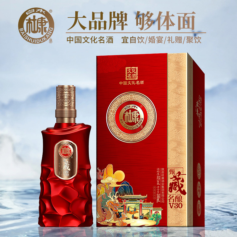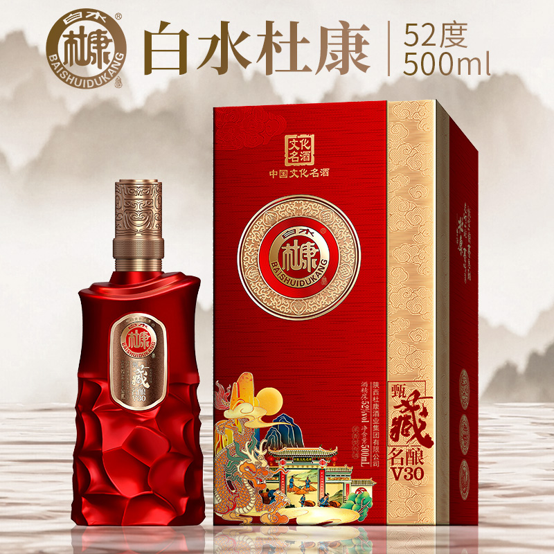 白水杜康甄藏v30红色款浓香型纯粮食酒高粱喜宴酒礼盒52度送礼