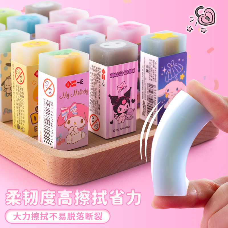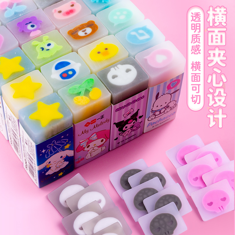 正版三丽鸥夹心橡皮库洛米果冻橡皮擦高颜值玉桂狗美乐蒂少女卡通可爱学生专用可切儿童水果动物擦不留痕礼物