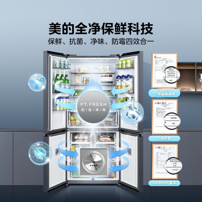 美的508法式双系统多门净味四门双循环无霜一级大容量家用冰箱
