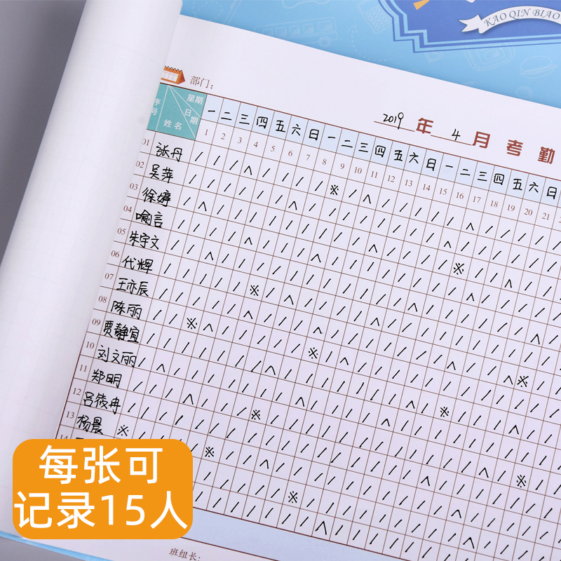 员工考勤表签到表 大号上班小班加班工地员工工天登记表大本多功能工地建筑上下午出勤表打卡表31天记工本