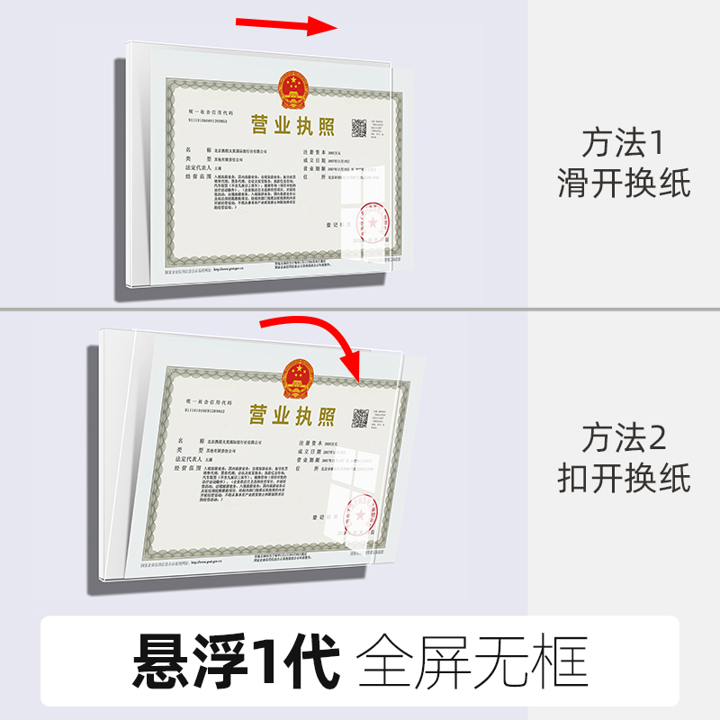 悬浮营业执照和卫生许可证框架三合一挂墙证照保护套证书展示相框