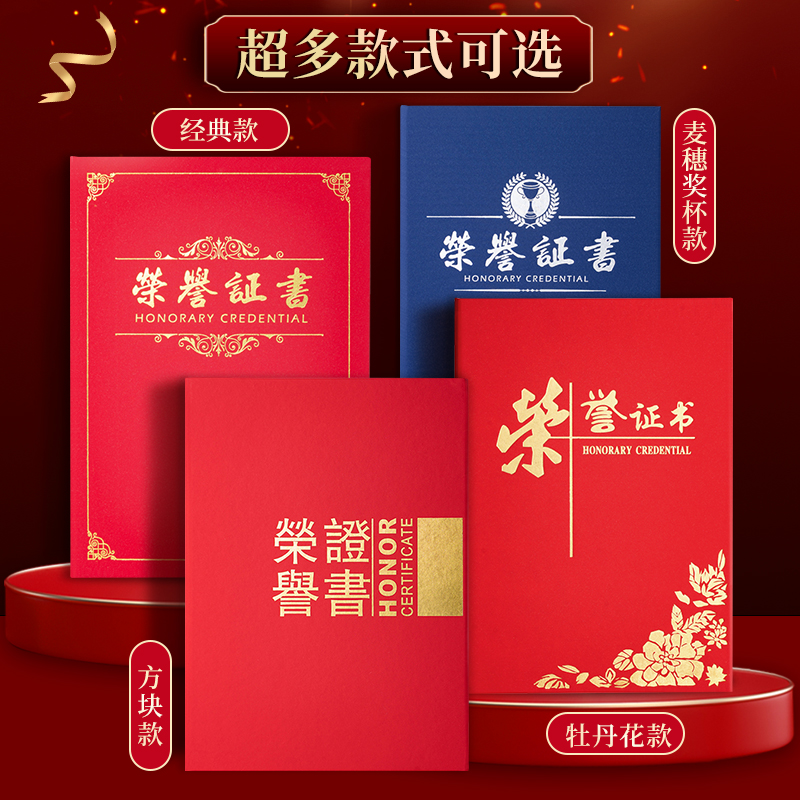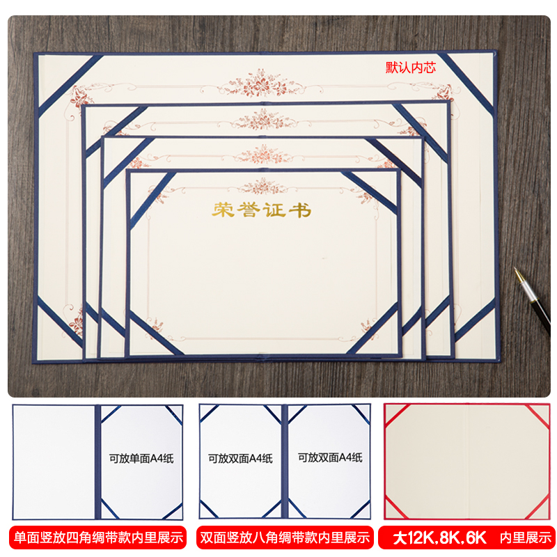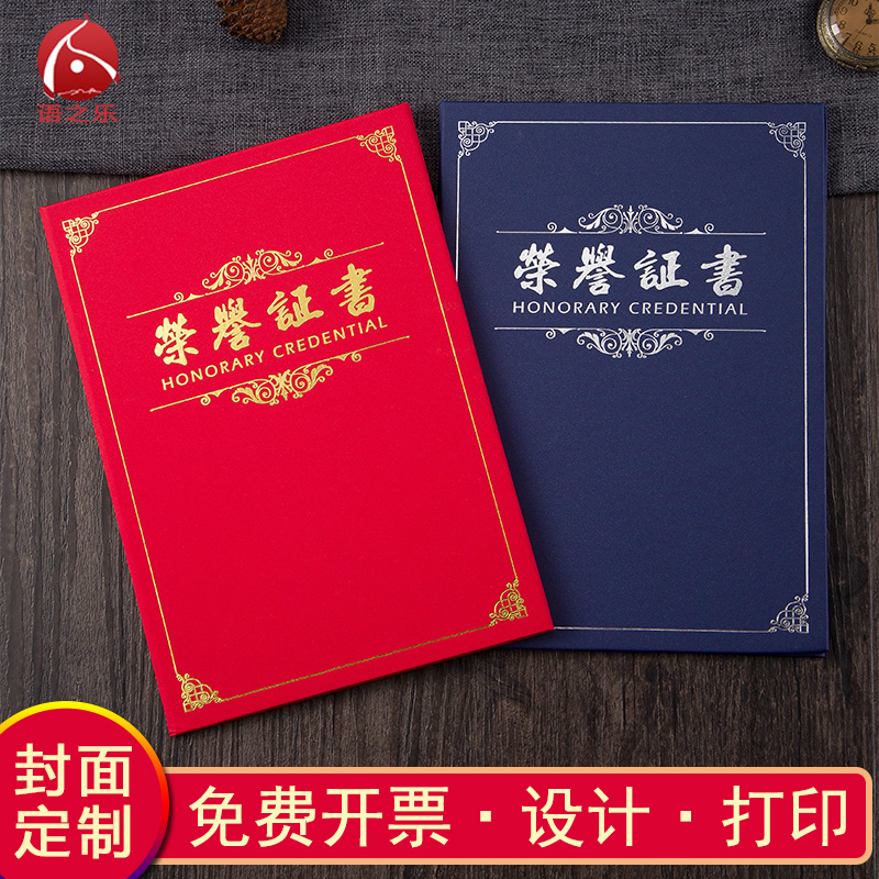 高档珠光面荣誉证书外壳定做a4内芯打印奖状内页定制封皮框制作