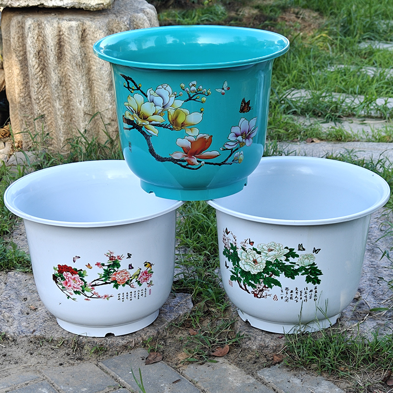 仿陶瓷花盆塑料加厚特大号种树绿萝白牡丹圆形盆栽盆客厅造型精致