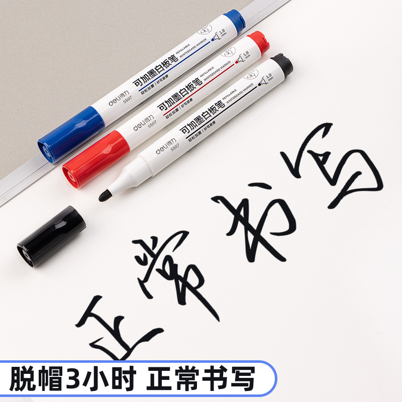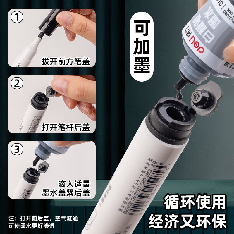 得力白板笔可加墨水粗头大号大容量白板笔可擦黑板笔教师用白板写字笔易写易擦彩色水笔黑色画板笔办公