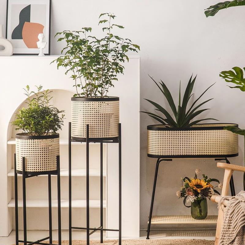 客厅落地式爬藤支架 阳台花架花篮 仿藤编铁艺置物架多肉花盆架子