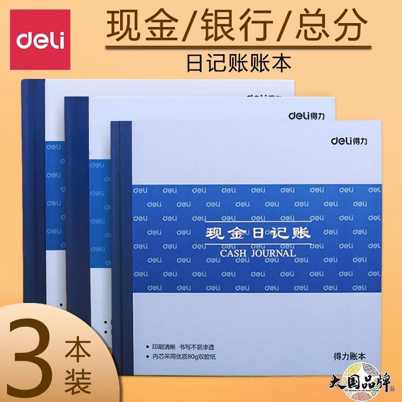 得力总分类三栏式现金日记账本存款日记账本日常流水家庭理财公司财务会计出纳收支簿开支收入明细账单簿