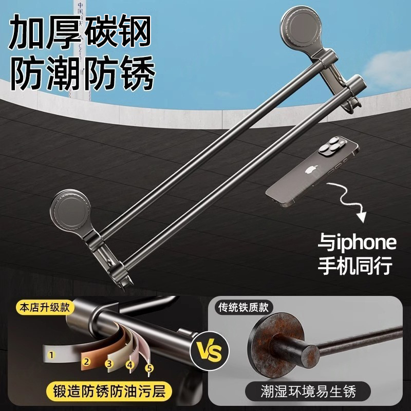 吸盘旋转抹布架免打孔毛巾架多杆壁挂沥水架置物架挂架吸盘式挂杆