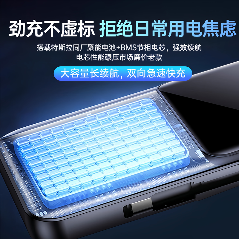 图拉斯小方块自带双线充电宝3C认证可上飞机2025新款快充45W大容量移动电源小巧标识便携带适用苹果/华为手机