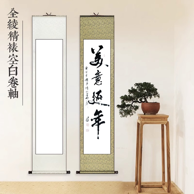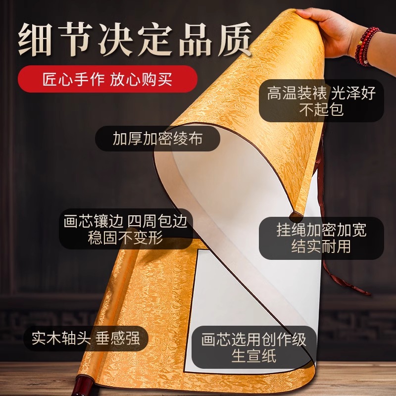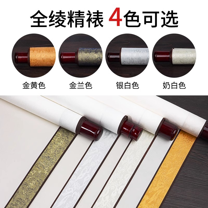 全绫布宣纸卷轴空白书法四尺对开六开半生熟免装裱手写挂轴横轴中堂立轴书法国画纸加厚不洇墨不渗透宜书宜画