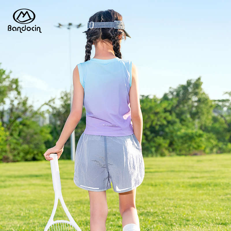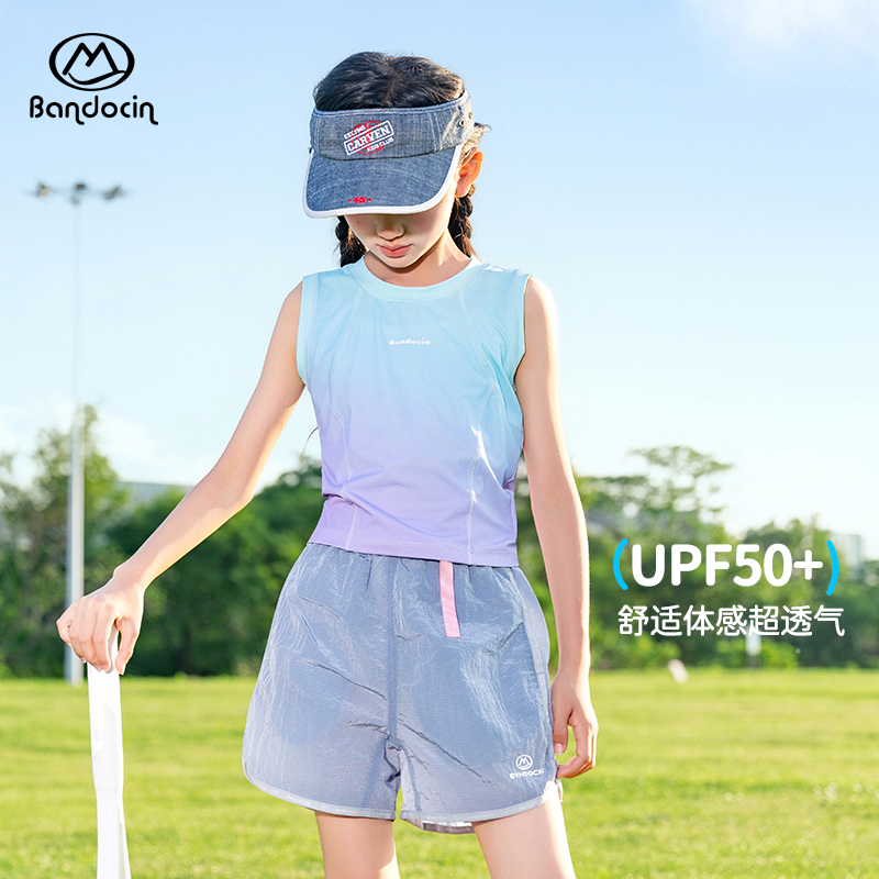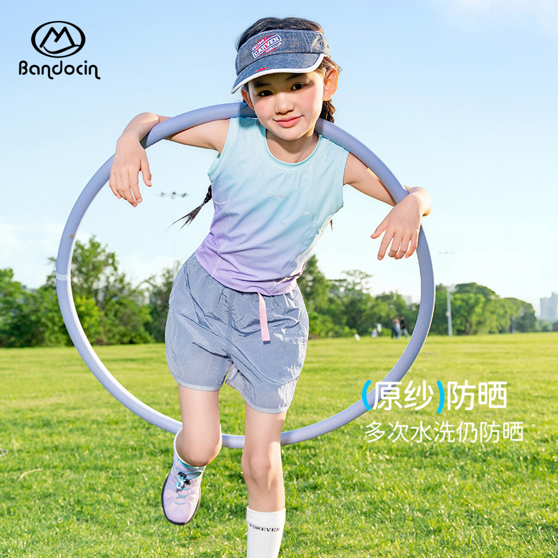 半度闲女童夏装凉感背心t恤洋气运动上衣2025新款儿童夏季渐变T潮