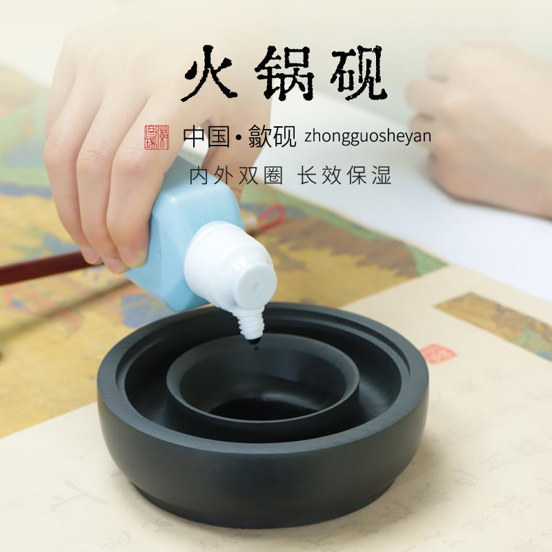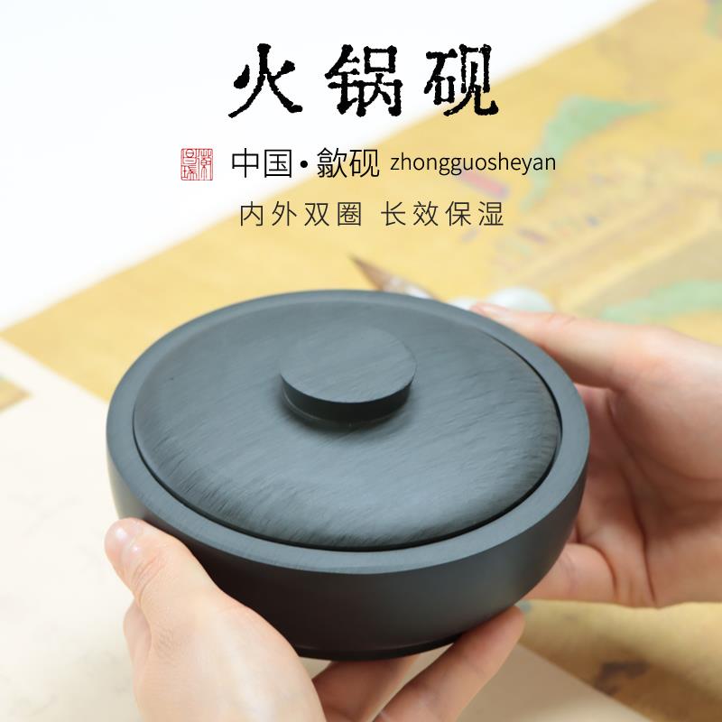 天然原石火锅砚台密封性好多功能歙砚保湿存墨汁初学文房四宝纸笔