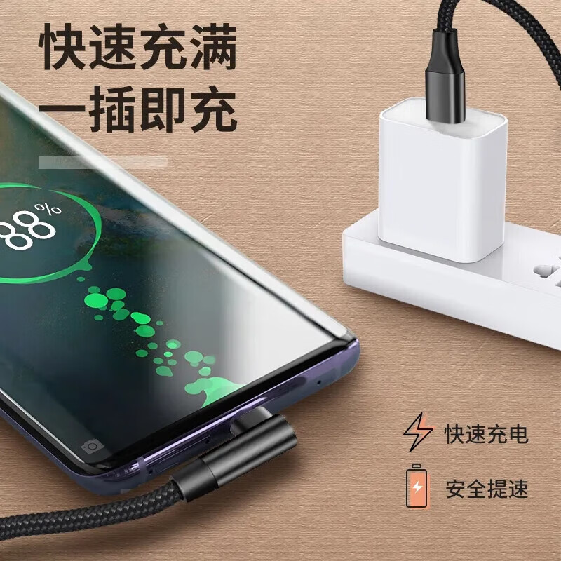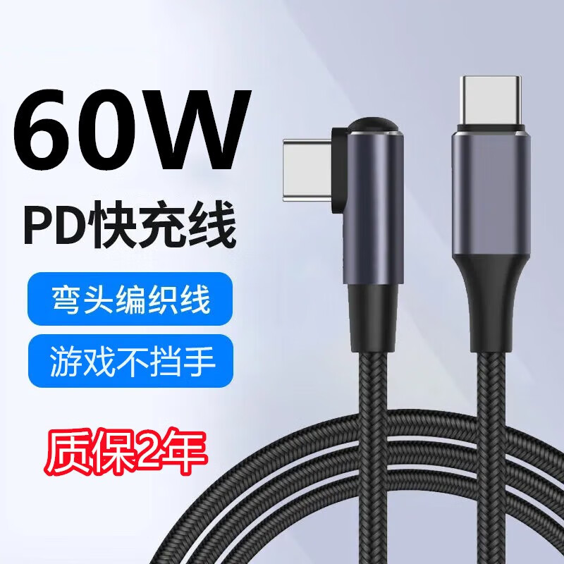 艾胜者 公对公双Type-C数据线60W快充适用华为荣耀小米三星手机ipadair5/mini6平板双头PD单弯头快充电线器