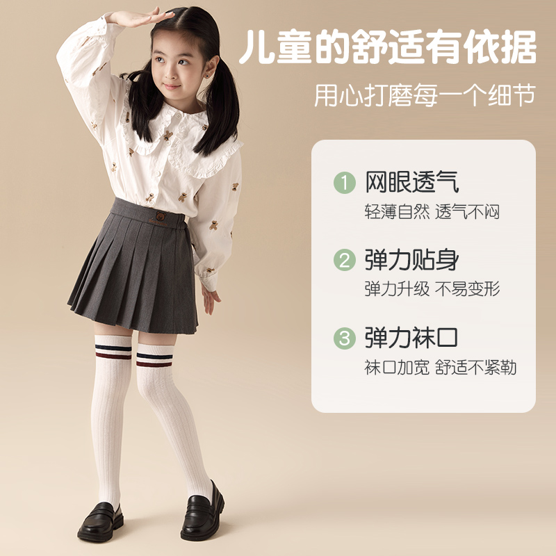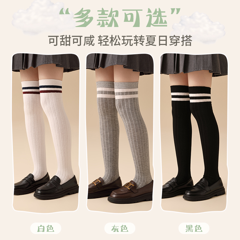 儿童过膝长筒袜女童春秋款薄款中厚白色不勒腿高筒堆堆袜大童秋季