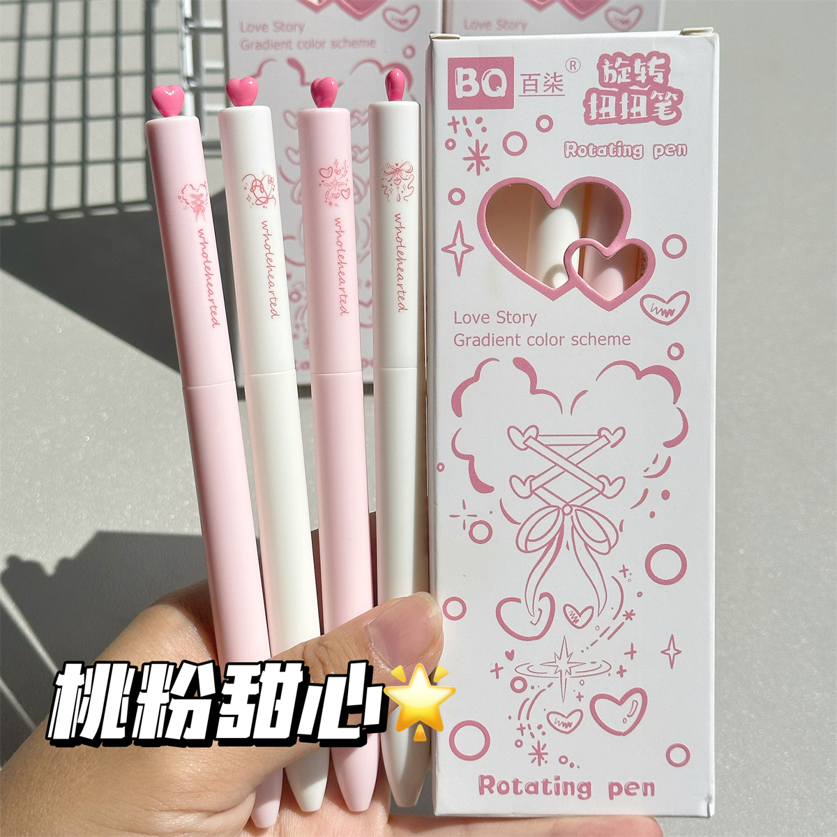 桃粉甜心旋转中性笔ST笔尖签字笔高颜值文具刷题笔低重心0.5速干