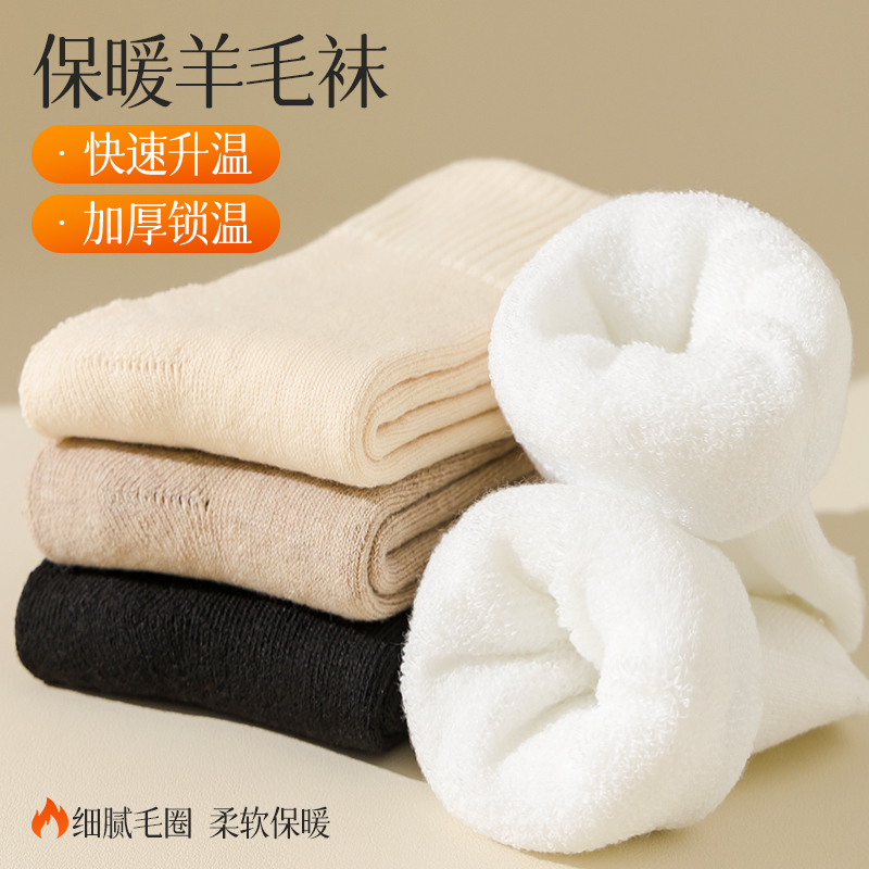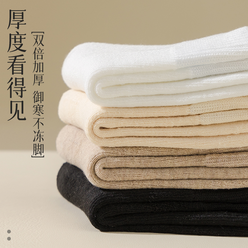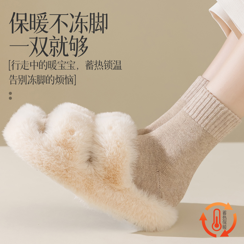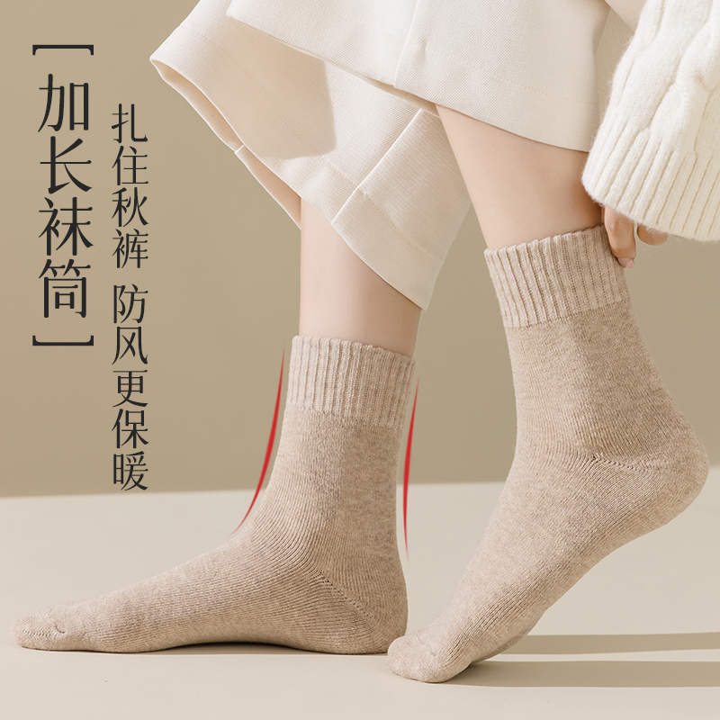 羊绒袜子女秋冬季中筒袜加绒加厚保暖毛圈袜居家睡眠月子袜冬天暖