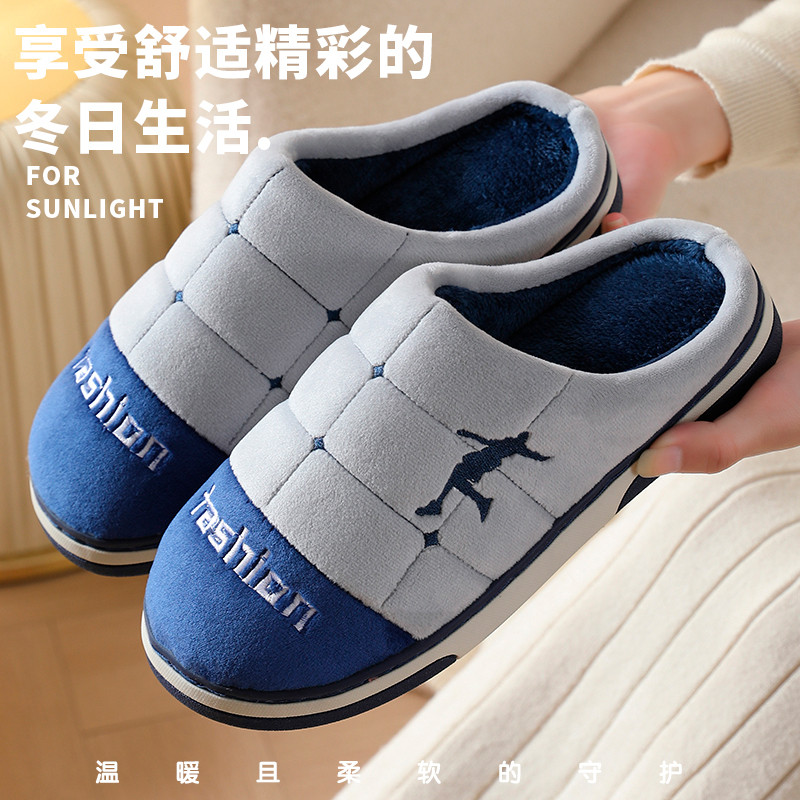 男士棉拖鞋秋冬季新款加绒情侣居家防滑厚底室内家用保暖棉拖鞋女