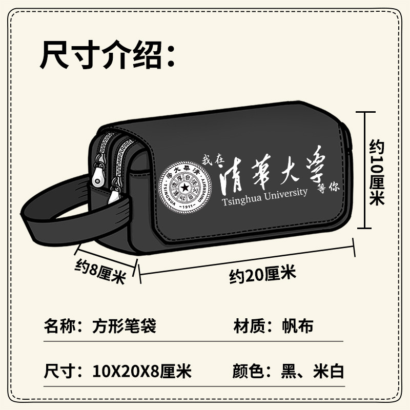 名校笔袋清华北大复旦初中生大容量双层铅笔盒文具盒男女学生收纳