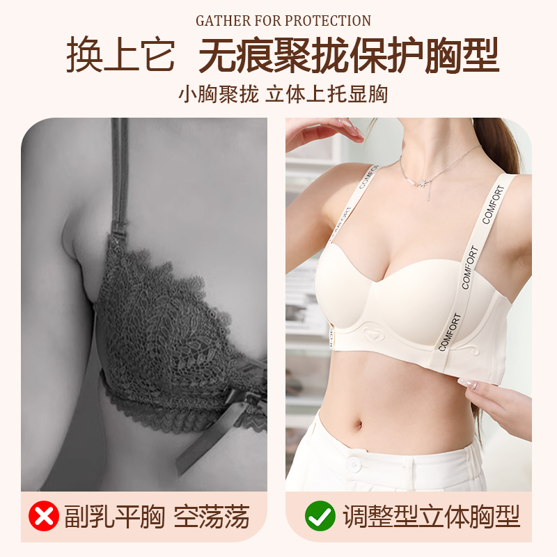 无痕内衣女士透气吊带背心小胸聚拢显大无痕收副乳软支撑上托胸罩
