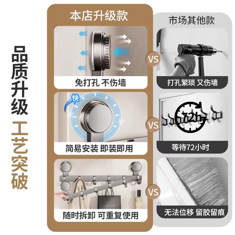 吸盘挂钩真空强力无痕收纳免打孔粘钩家用浴室厨房门后卫生间吊钩