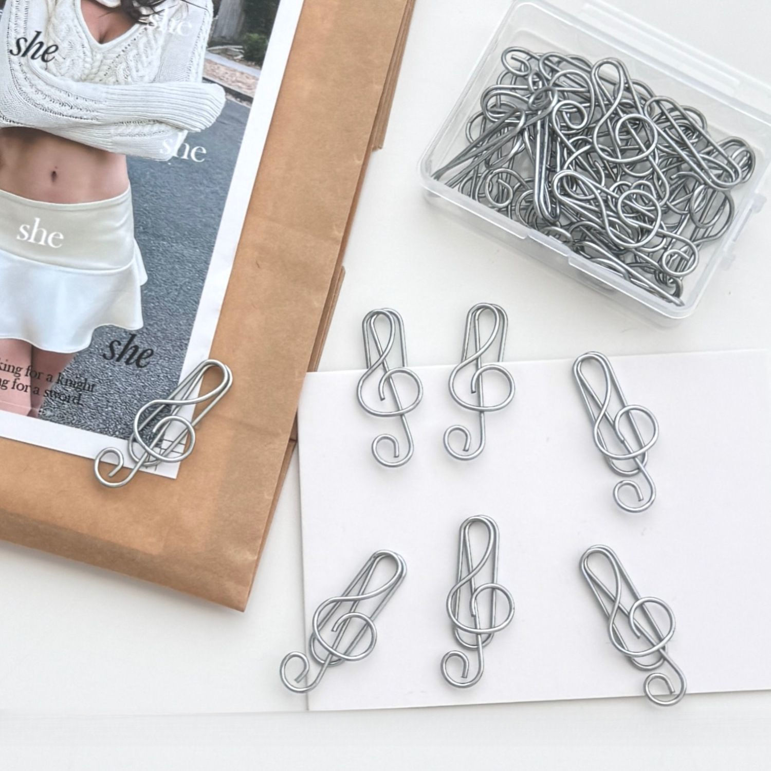 银色音符回形针学生资料文件收纳曲别针明信片装饰出物回形针用品