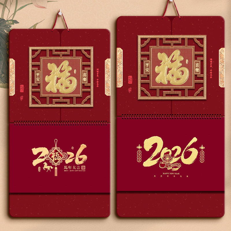 2026年新款挂历创意精美福字吊牌中国风日历烫金字体插画家用挂墙式手撕月历送礼佳选不易弯折内容丰富可定制