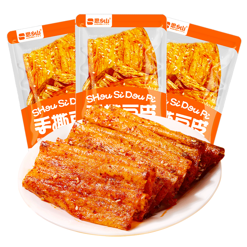 思乡山手撕豆皮湖南特产豆卷豆制品辣片零食小吃休闲食品到手45包