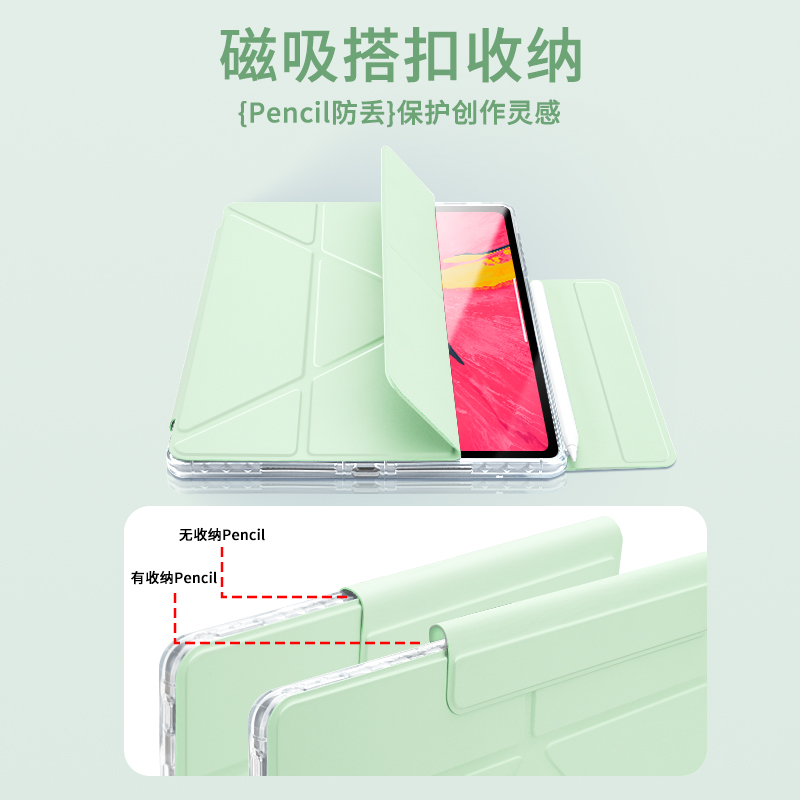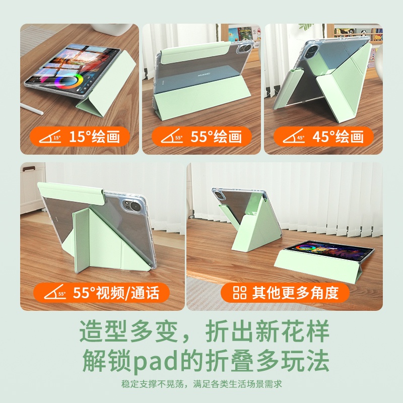 gomi适用华为matepadair12保护套Pro11磁吸SE平板matepad11.5s保护壳3+Y型电脑115搭扣122透明亚克力草木绿