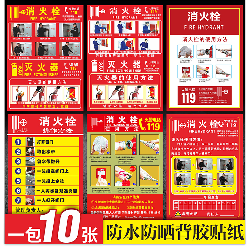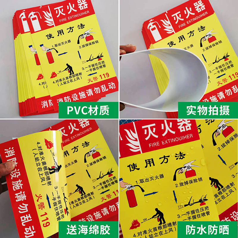 消防安全标识牌灭火器使用方法消火栓使的使用方法物业安全标识牌放置点贴纸PVC消防器材提示验厂警示牌定制