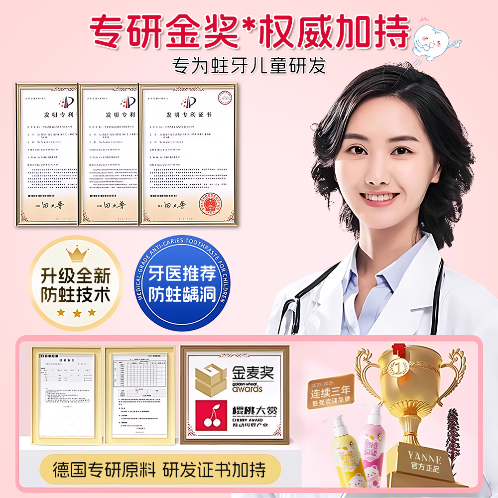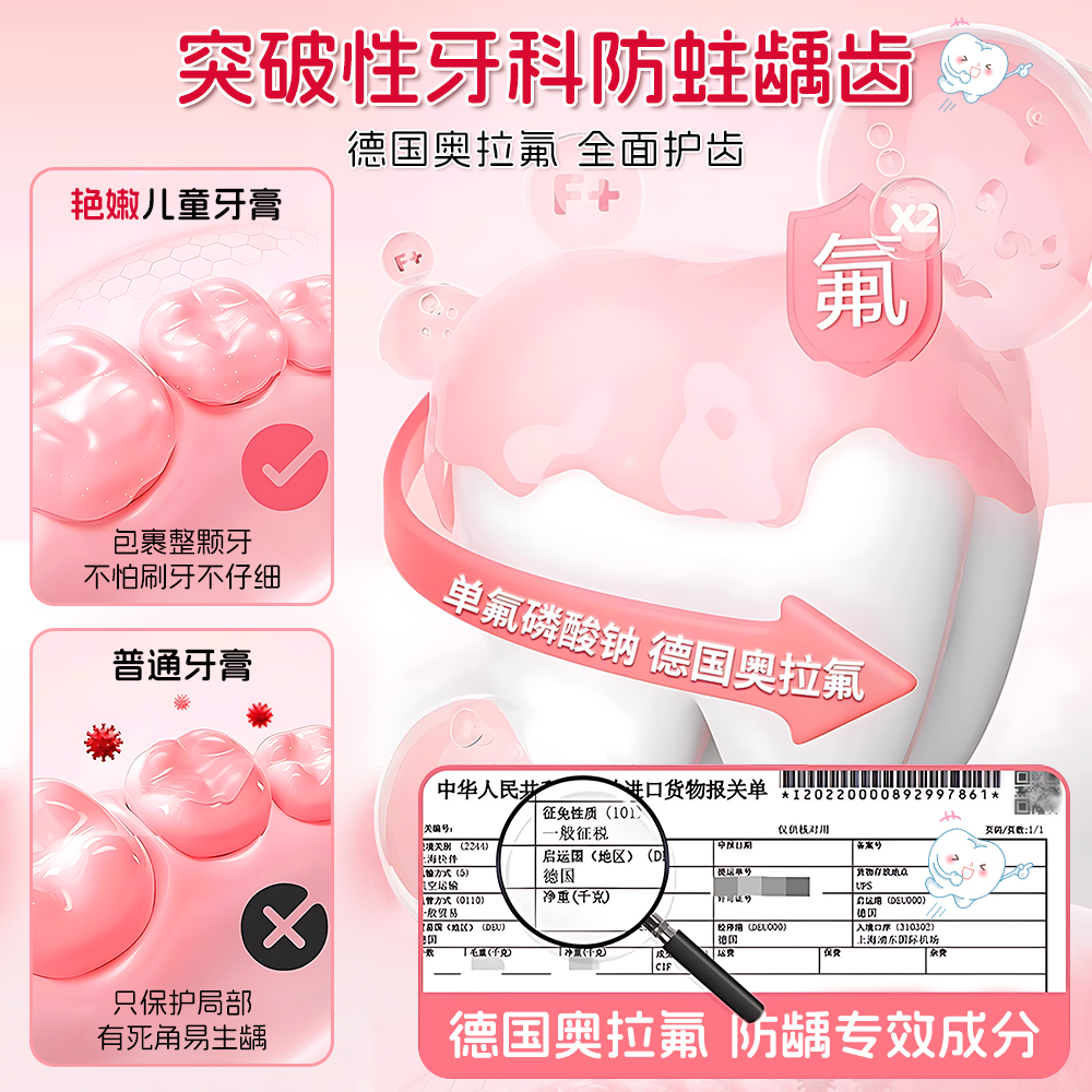 兔头妈妈儿童牙膏高纯奥拉氟儿童含氟牙膏防蛀牙龋齿3-6-12岁宝宝
