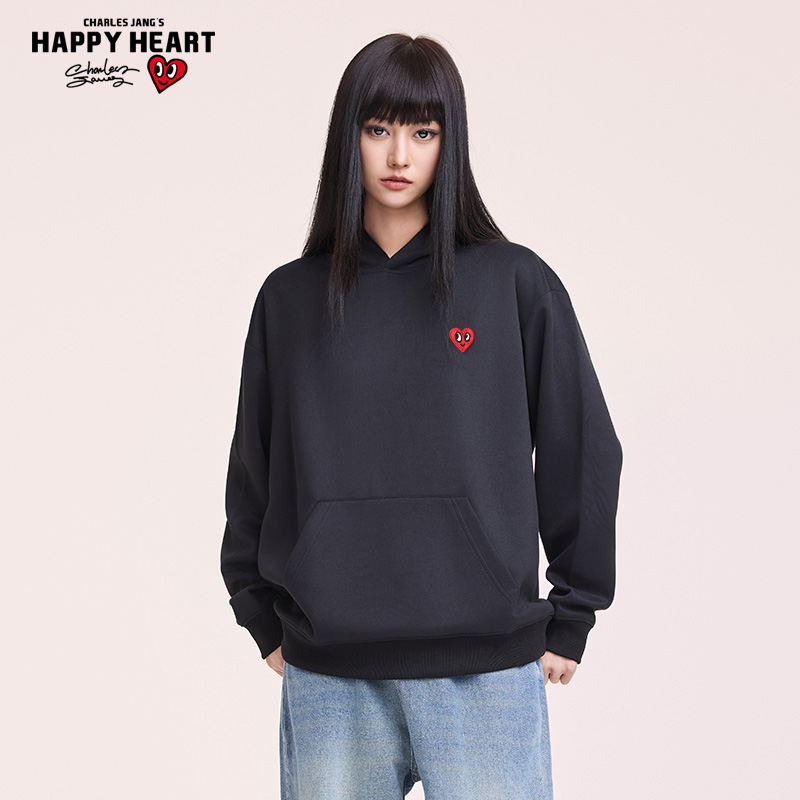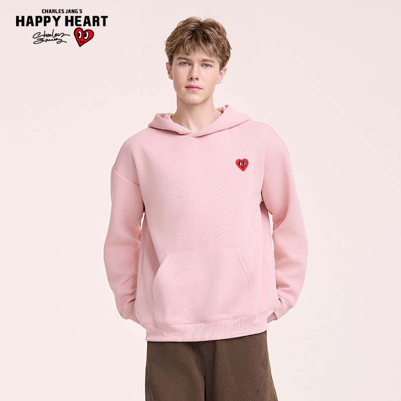 查尔斯桃心小爱心连帽卫衣男女同款云感双面超柔面料套头情侣上衣