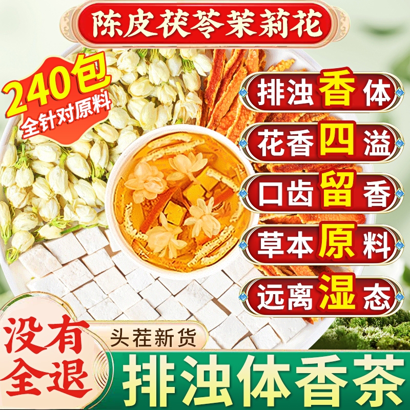 茉莉陈皮茯苓茶中草药材排浊茶官方正品茉莉花茯苓橘皮香体泡水喝