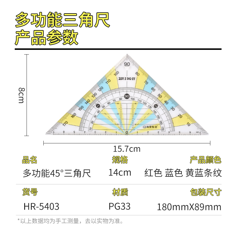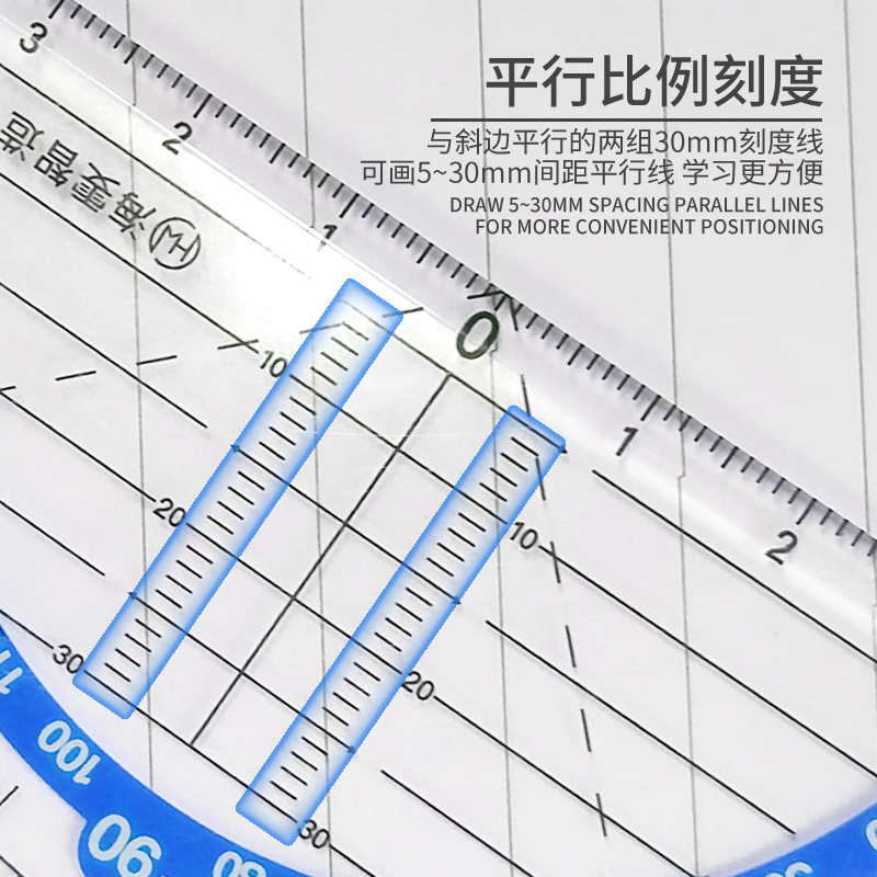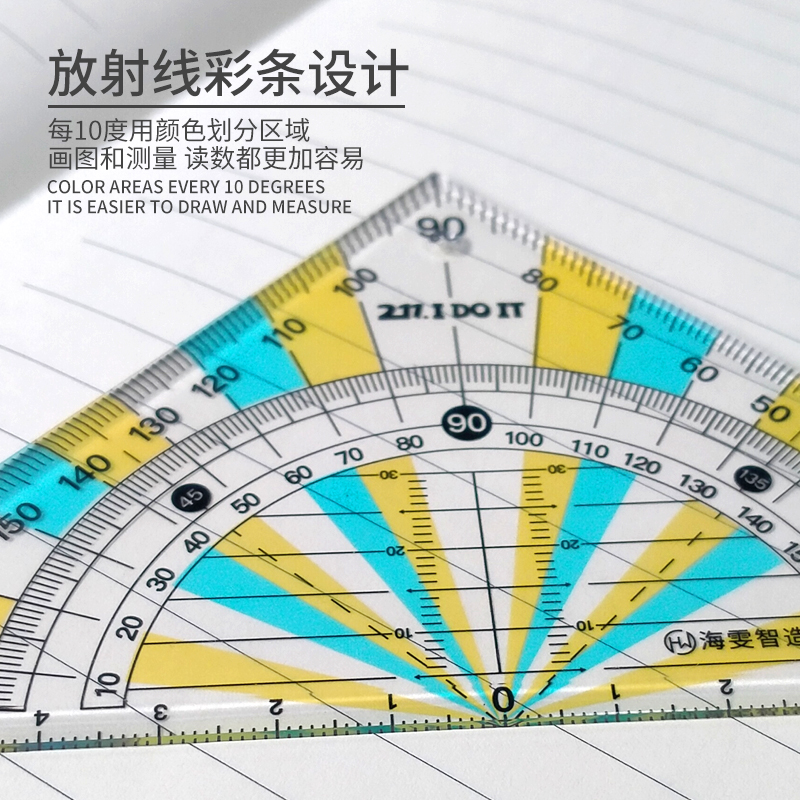 海雯多功能三角尺学生用量角器平行比例刻度高颜值透明款双向清晰刻度学生用三合一环保材质