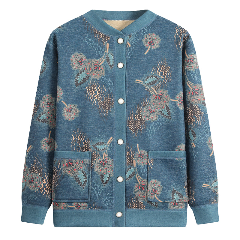 妈妈秋冬针织开衫加绒保暖外套老年人奶奶装太太老人衣服加厚毛衣