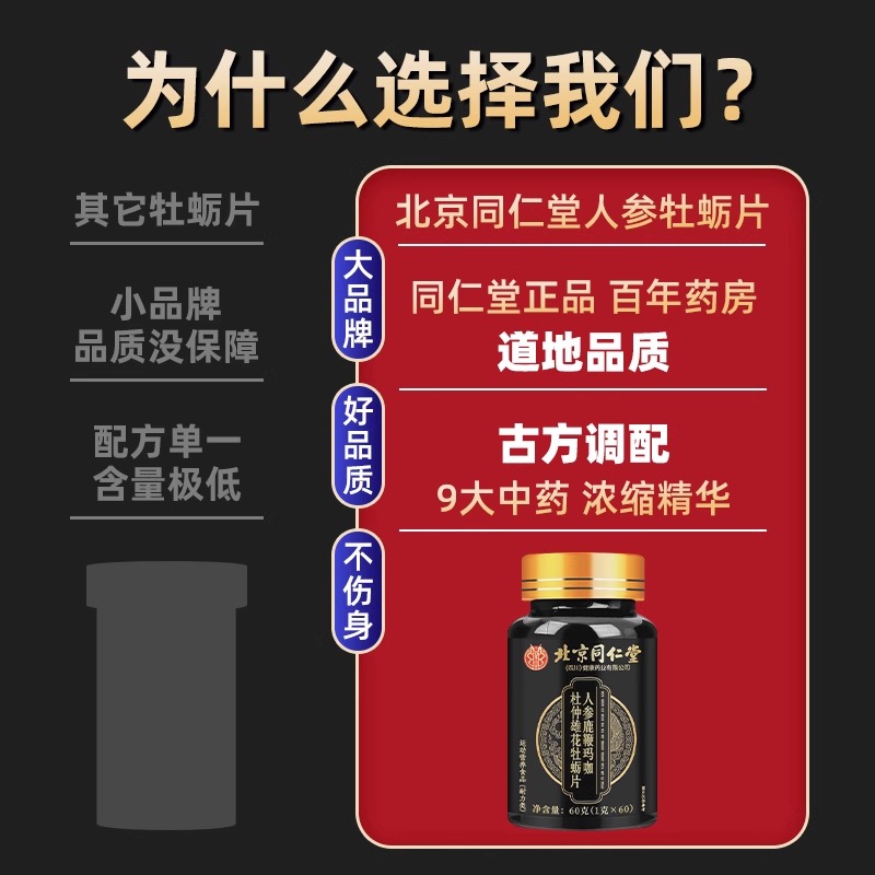 北京同仁堂人参玛咖牡蛎精片鹿鞭丸玛卡男人男性正品官方旗舰店
