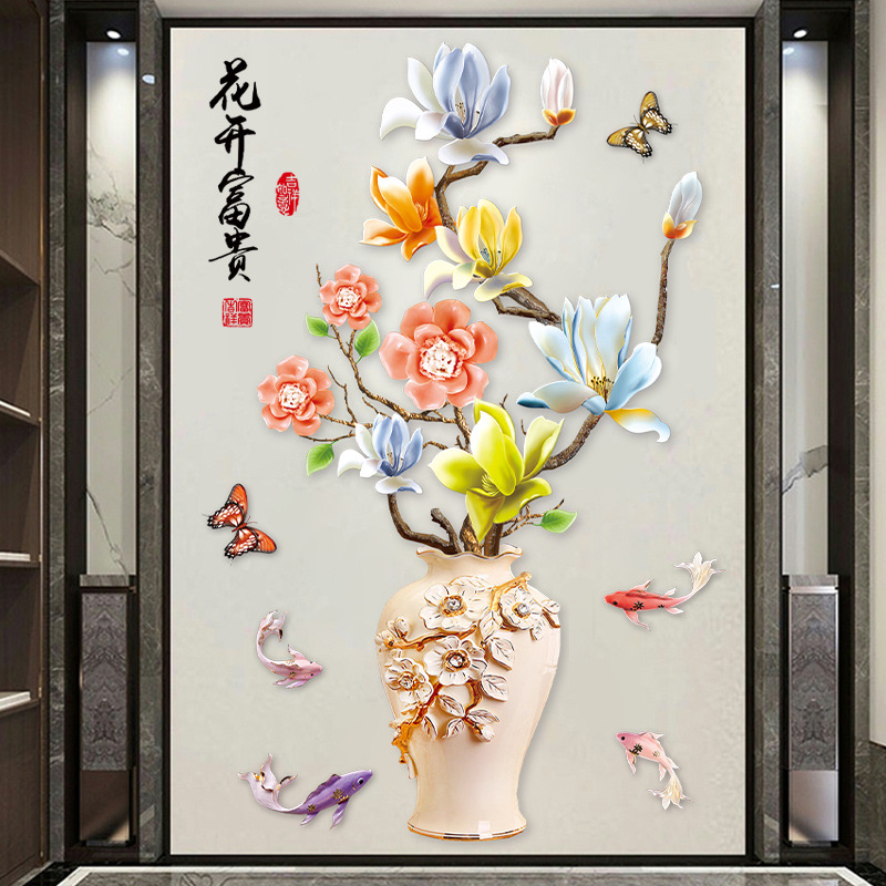 全新升级版卉之彩CH39071AB锦鲤花瓶简约风客厅电视背景自粘墙贴