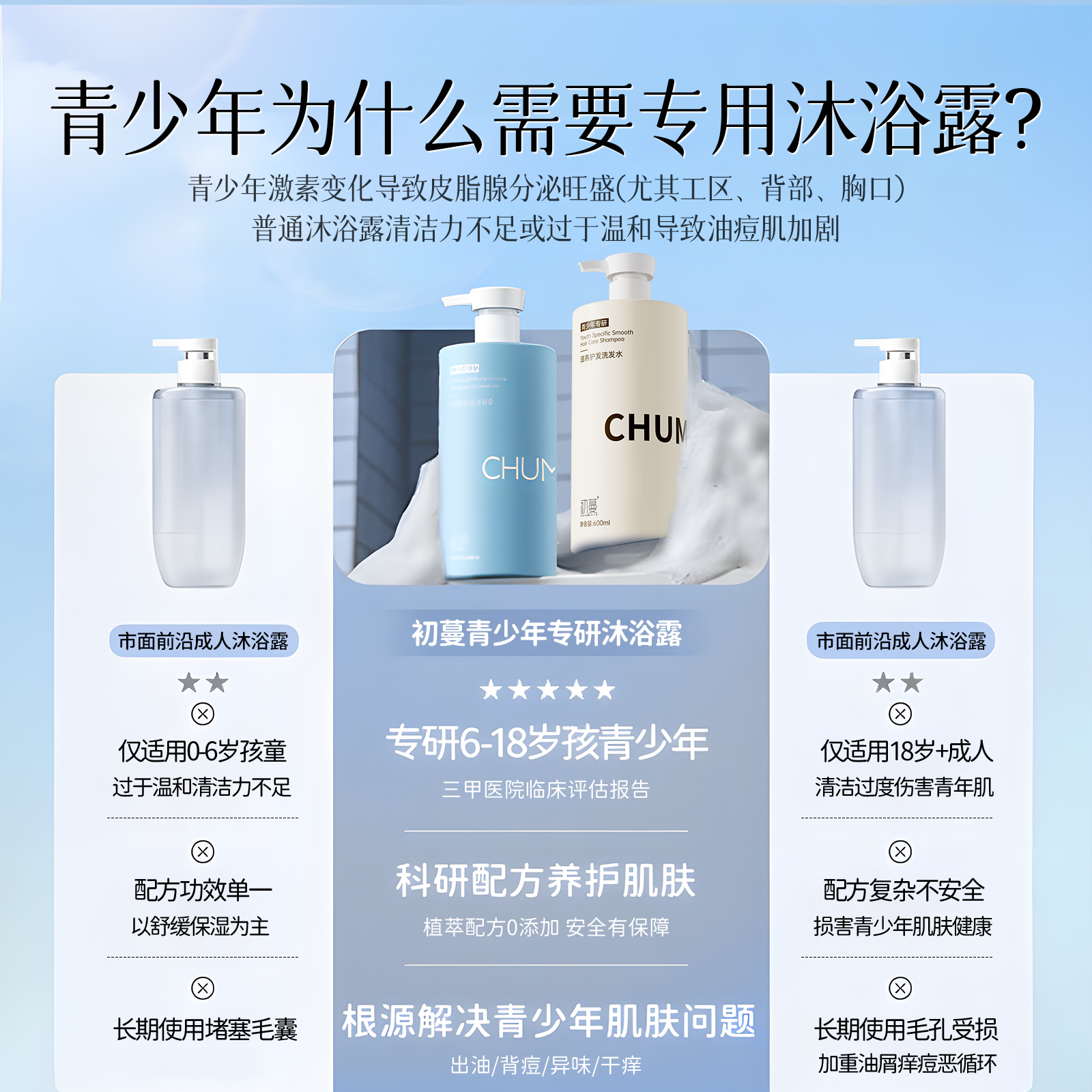 青少年沐浴露男孩女孩学生专用洗发水露套装持久留香控油除螨祛痘