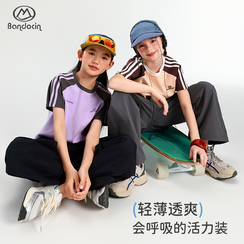 半度闲女童夏季拼色短袖t恤洋气薄款2025新款儿童夏装运动上衣潮T