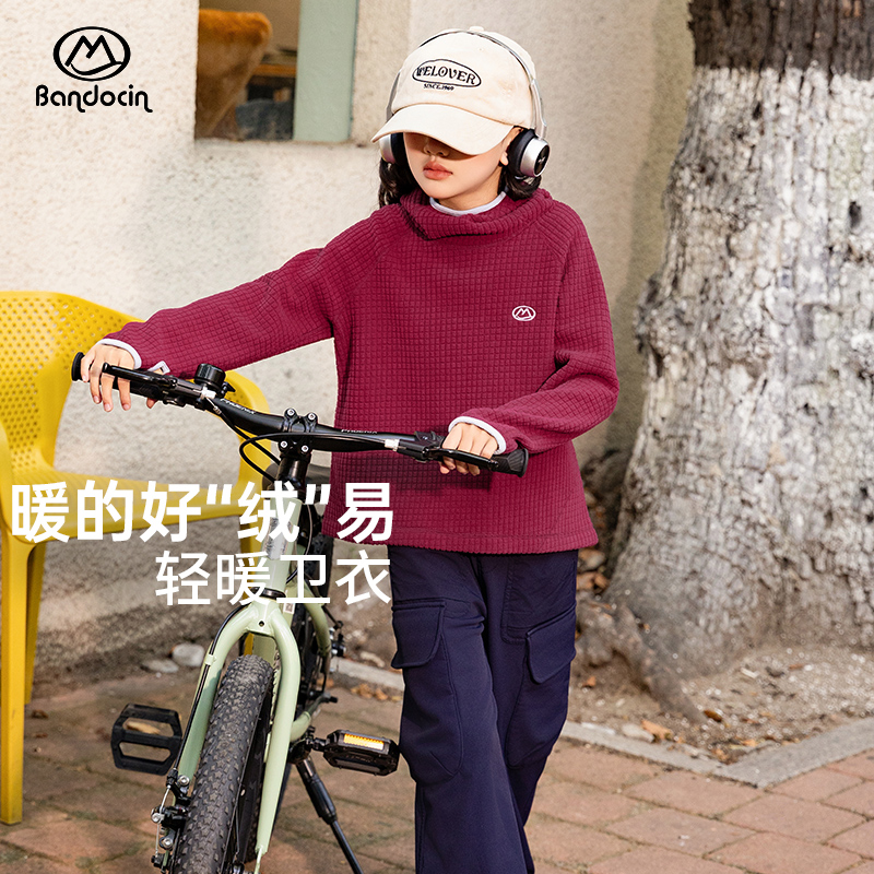 半度闲女童华夫格连帽卫衣加绒加厚秋冬装洋气25新款儿童冬季上衣