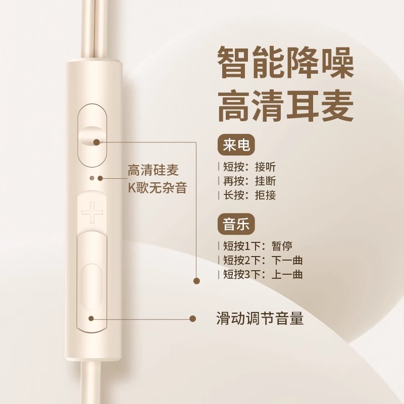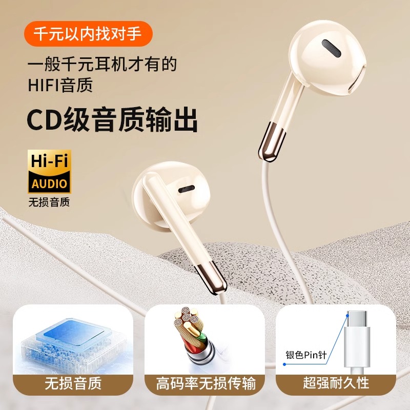 官方正品耳机有线入耳式typec接口高音质降噪K歌睡眠手机平板圆口