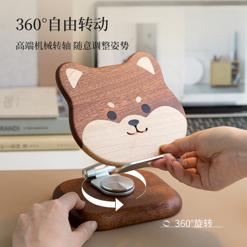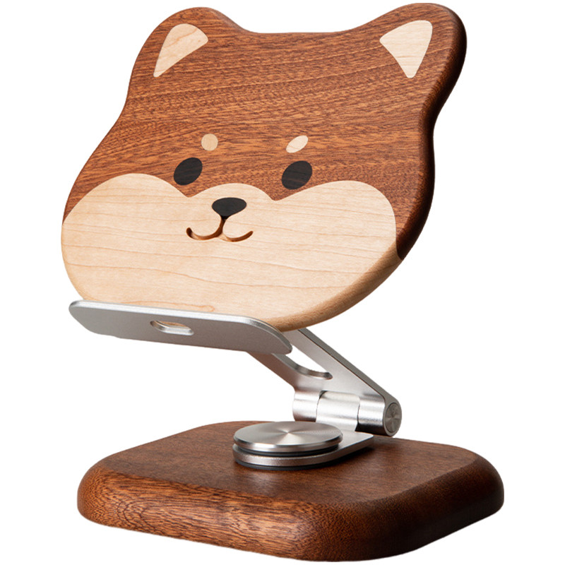 顽木柴犬手机支架可调节角度面创意实木质懒人平板电脑支撑架礼物