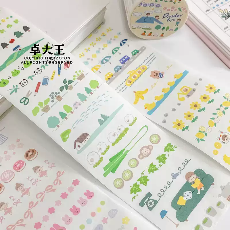 卓大王【阿卓很多分割线】手帐胶带和纸基础色系线条分界线贴纸卷